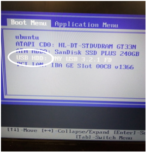 | 6. | Use the up and down arrow keys to select USB and press return. |