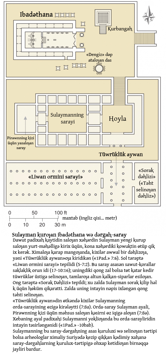 8 Sulayman ɵzi olturidiƣan saray, yǝni dǝⱨlizning arⱪa ⱨoylisiƣa jaylaxaⱪan sarayning layiⱨisi «