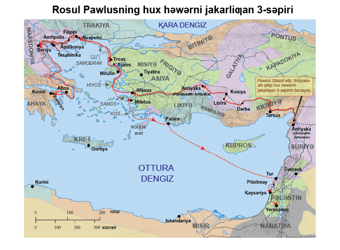 □20:15 «üqinqi küni Samos ariliƣa yetip kǝlduⱪ wǝ Trogillium xǝⱨiridǝ ⱪonduⱪ...» — bǝzi kona kɵqürmilǝrdǝ: «Trogillium xǝⱨiridǝ ⱪonduⱪ» degǝn sɵz tepilmaydu. «ǝtisi Hiyos arilining uduliƣa kelip ... üqinqi küni Samos ariliƣa yetip kǝlduⱪ wǝ Trogillium xǝⱨiridǝ ⱪonduⱪ; uning ǝtisi Miletus xǝⱨirigǝ barduⱪ» — bu sǝpǝr yoli ǝtǝy Əfǝsus xǝⱨiridin ɵtkǝnidi (16-ayǝtni kɵrüng).